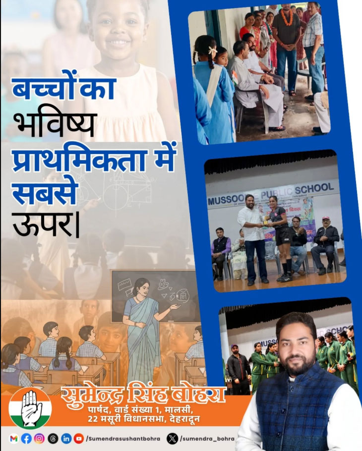 मालसी (देहरादून) क्षेत्र में युवाओं और खेल संस्कृति को बढ़ावा देने के प्रयासों में सुमेन्द्र सुशांत बोहरा का नाम तेजी से उभर रहा है। एक युवा जनप्रतिनिधि और सक्रिय सामाजिक